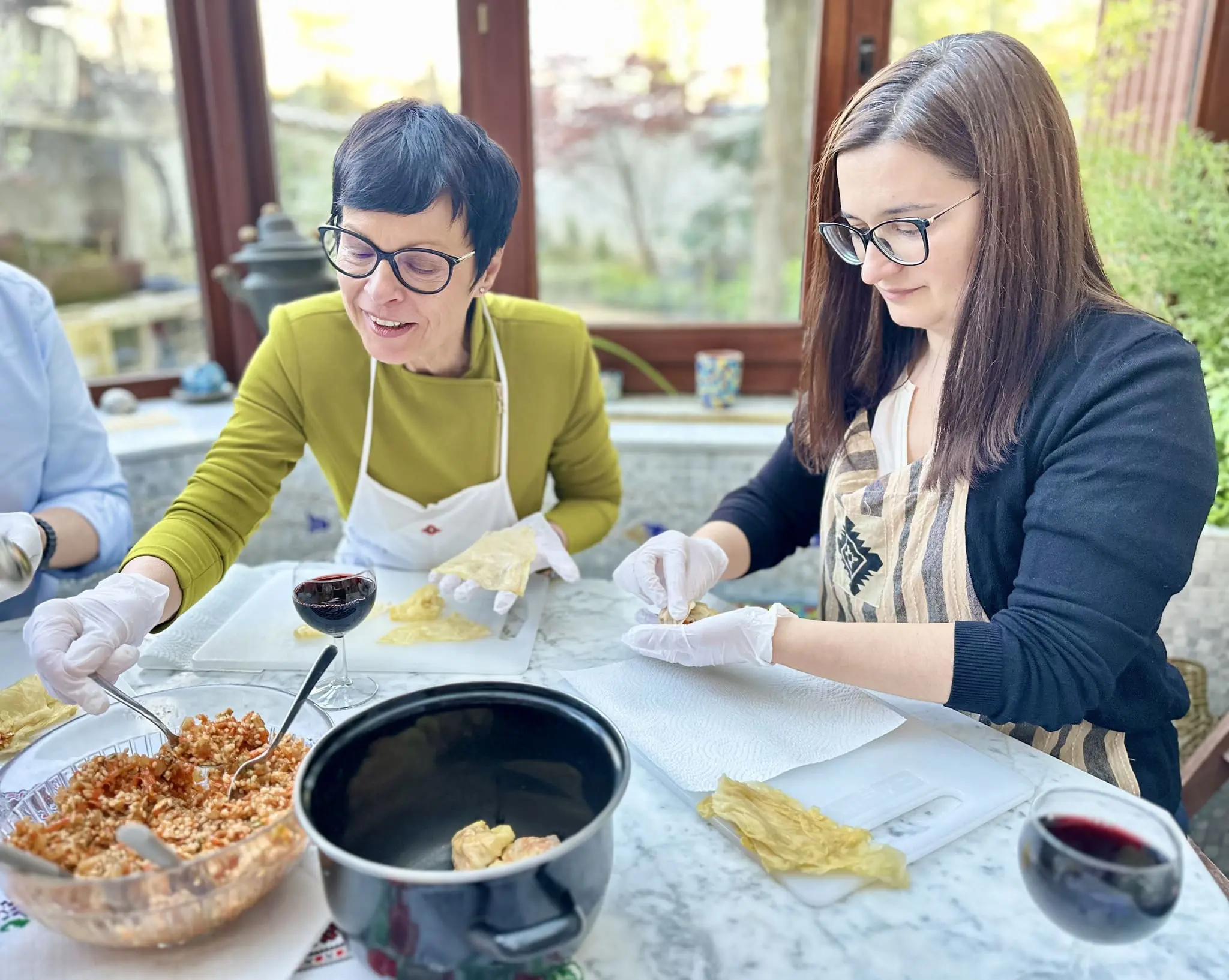 „Mama mea obișnuia să gătească așa ceva, dar le făceam de cinci ori mai mari”, a spus comisara europeană arătând spre vasul cu sarmale minuscule pe care tocmai a învățat să le facă de așa dimensiuni.