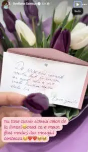 Svetlana Sainsus a primit acasă la Chișinău un buchet de lalele însoțit de un mesaj de dragoste.