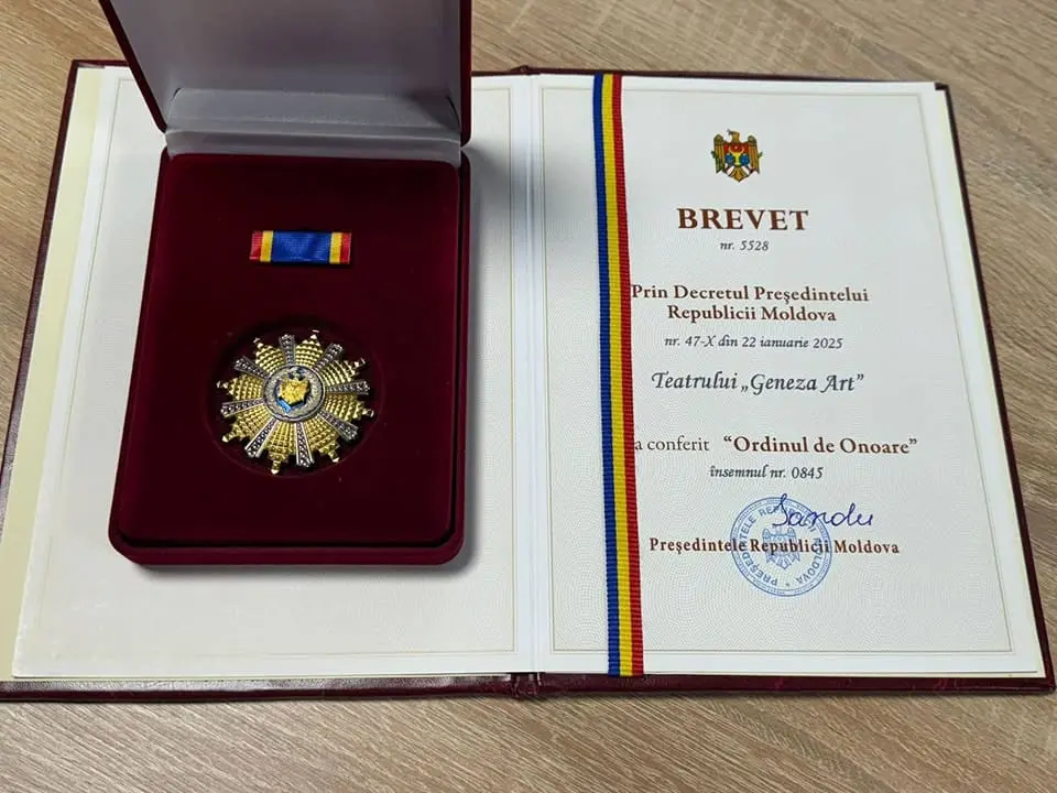 „În numele Teatrului Geneza Art, exprimăm cele mai sincere mulțumiri, Doamnei Președinte, Maia Sandu, pentru onoarea acordată prin decernarea Ordinului de onoare Teatrului, cu prilejul aniversării a 15 ani de la fondare.