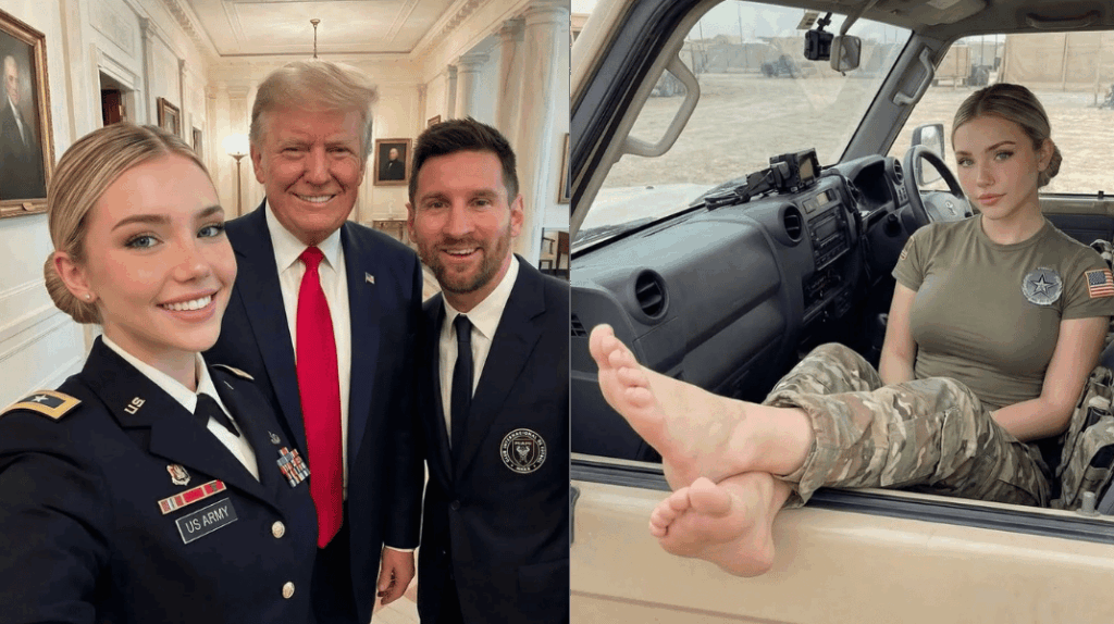 Trump are susținătoare sexy, dar inexistente! O populară femeia-soldat s-a adeverit a fi creată cu AI