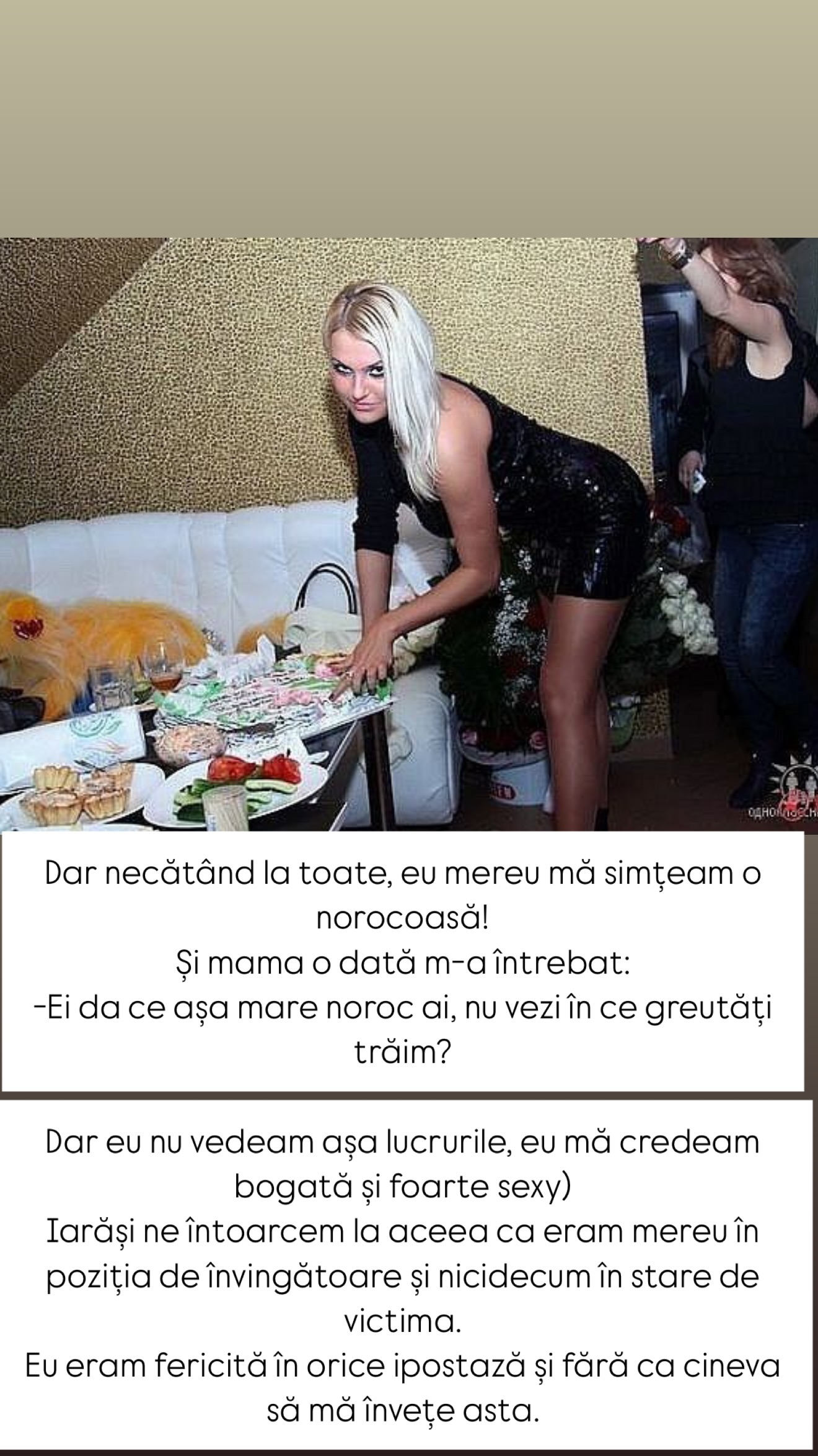 Influencera mai recunoaște că au fost timpuri când imita o viață bogată și își cumpăra fake-uri. Au mai fost însă și timpuri când pe ea se ținea bugetul familiei. Soțul ei, Vasile fiind în impas financiar.