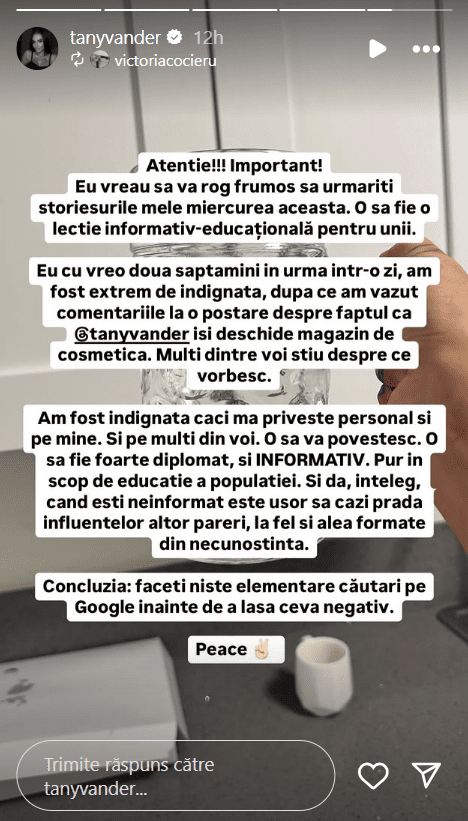 Tany Vander a redistribuit triumfătoare anunțul Veronicăi Cocieru.