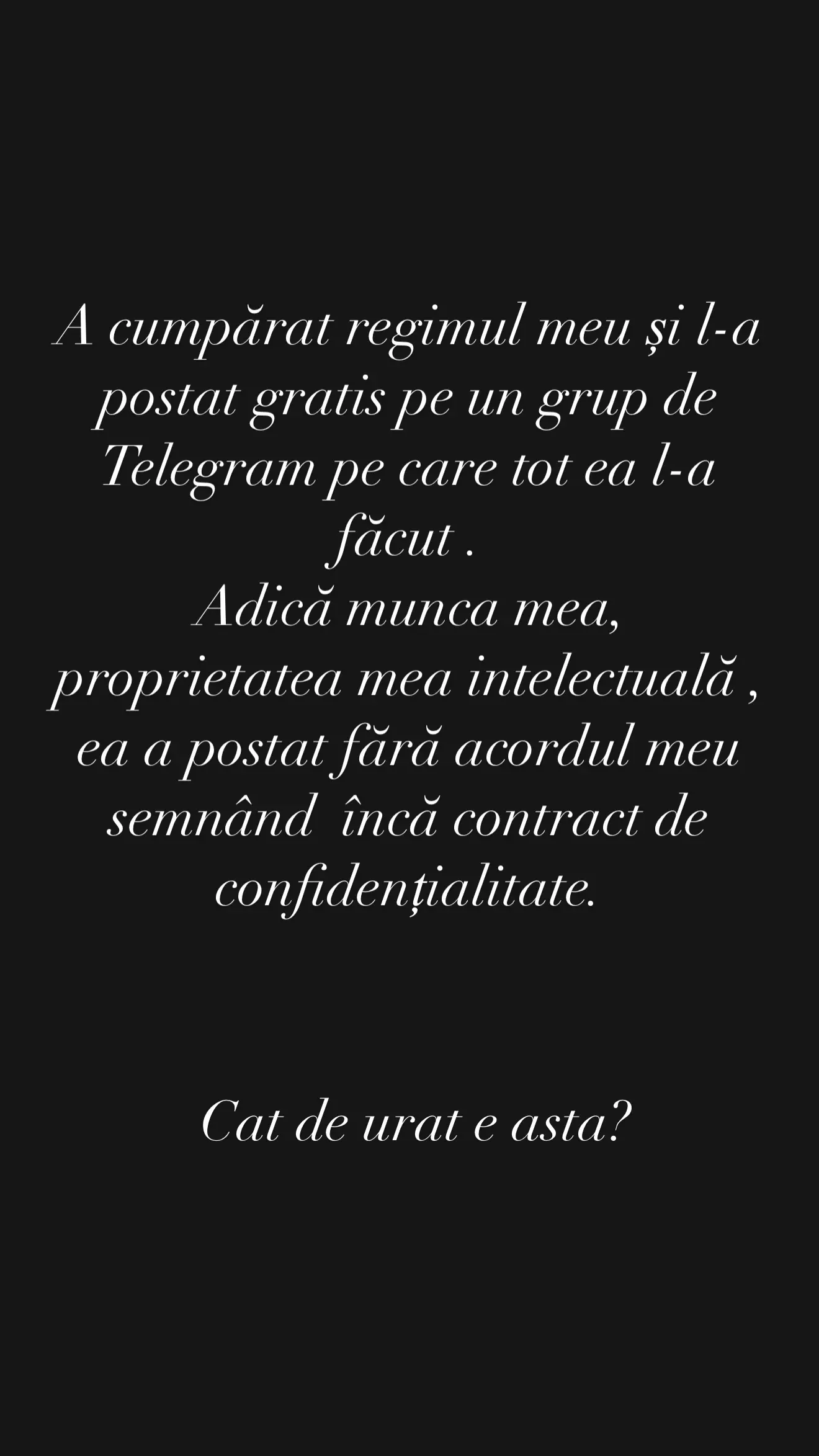 Partea și mai dureroasă pentru afaceristă e că în grupul de Telegram îi era discutată viața intimă și erau pomeniții copii într-o formă de batjocoră, susține ea. Asta a determinat-o să recurgă la artileria grea.