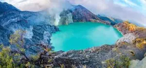Nivelul pH-ului în lac este de 0,3, similar cu nivelul pH-ului acidului de baterie, care este soluția care creează și stochează energia electrică în mașini. Prin comparație, aciditatea sucului gastric este între 1,5 și 2 pH, iar cea a sucului de lămâie între 2 și 3 pH. În ciuda faptului că un corp uman s-ar putea dizolva instantaneu în lacul Kawah Ijen, microorganismele încă trăiesc acolo. Lacul din crater are o culoare verde albăstruie și este atât de strălucitor încât poate fi văzut din spațiu. Mineralele și acizii din lac dau apei o culoare turcoaz. Sursa acestor minerale și acizi este o cameră de magmă incandescentă situată sub vulcan,