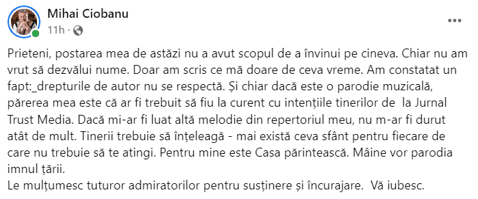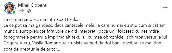 Mihai Ciobanu și-a revărsat nemulțumirea și pe Facebook, în două postări, pe care le puteți citi integral mai jos.